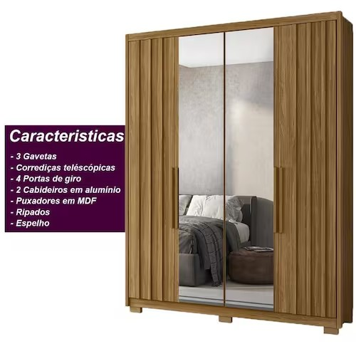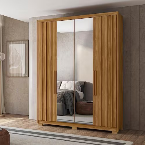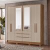 Seja o primeiro a avaliar "Guarda Roupa Califórnia 4 Portas 3 Gavetas C/ Espelho Ripado Freijó/Off White – Moval"